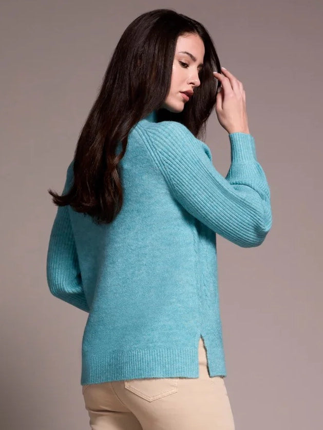 Long Puff Sleeve Mock Neck Sweater Mistblue by Tribal
