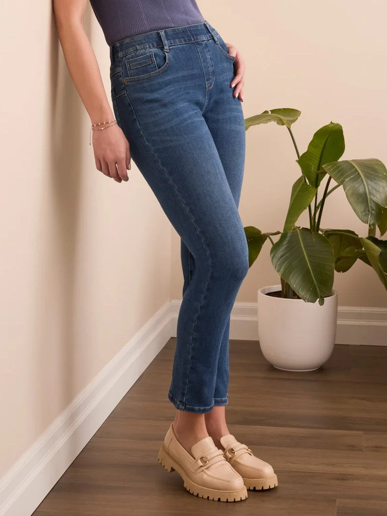 Sophia Curvy Pull On Slim Crop Jeans Faded Blue by Tribal