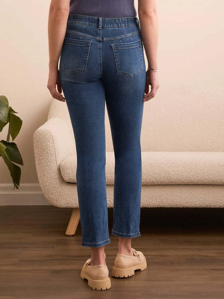 Enhance your silhouette with these slim-leg jeans, featuring back dart detailing to create a sleek, figure-flattering fit. The pull-on waist, with inner elastic for added support, ensures a perfect, comfortable fit. Crafted from boundless stretch denim, they offer exceptional comfort and flexibility, while the premium material ensures impressive recovery and lasting style.