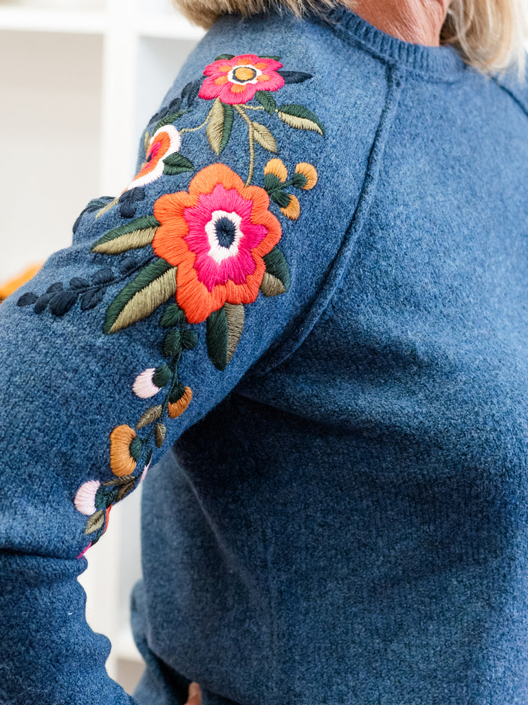 Embroidered Raglan Sleeves Sweater HDenim by Charlie B