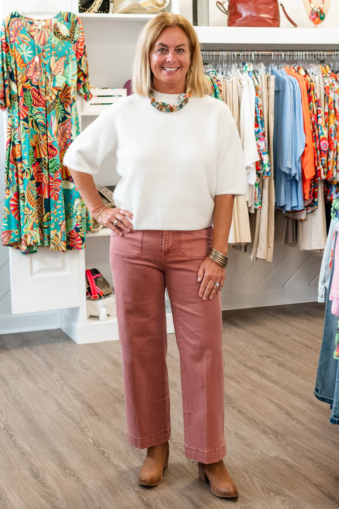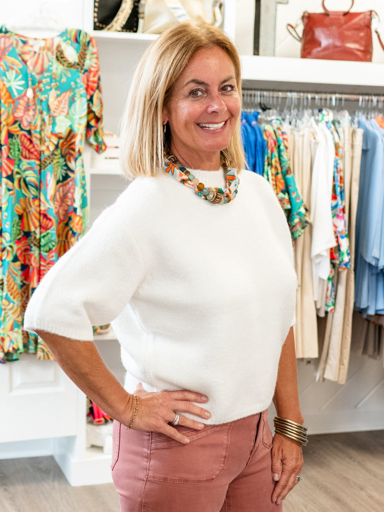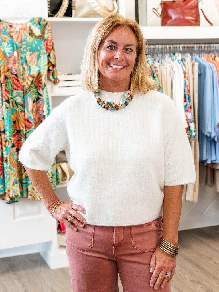Elbow Sleeve Balloon Shape Sweater Ecru by Charlie B