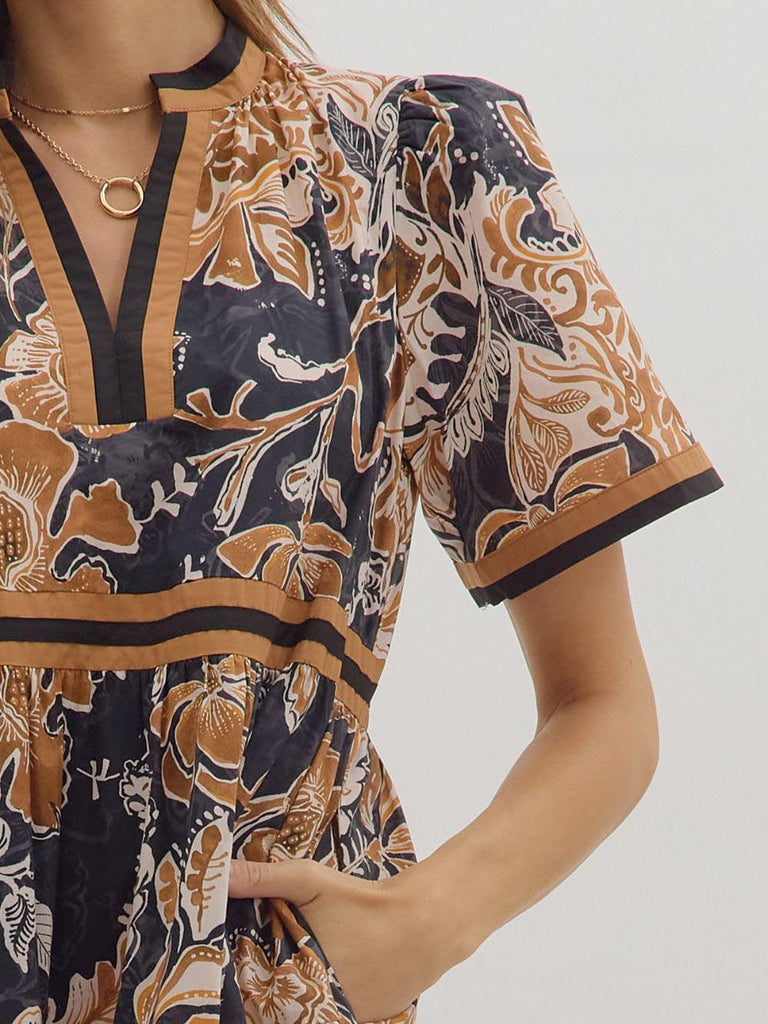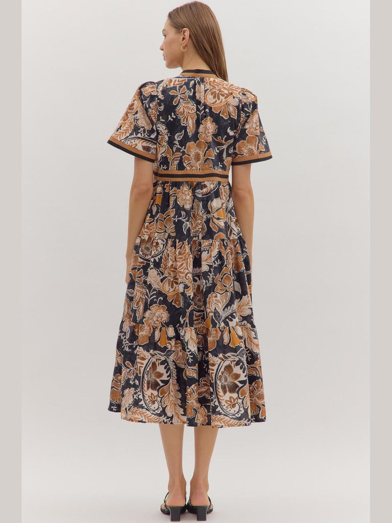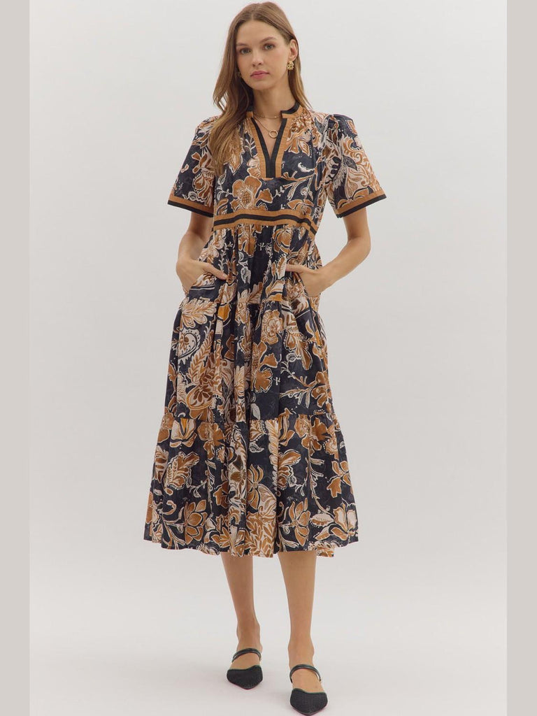 Floral Print Short Sleeve Midi Dress Brown by Entro