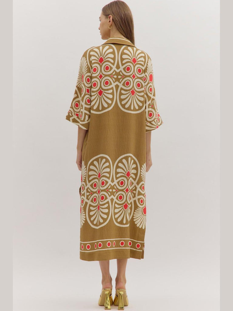 Geometric Print Half Sleeve Midi Dress Camel by Entro