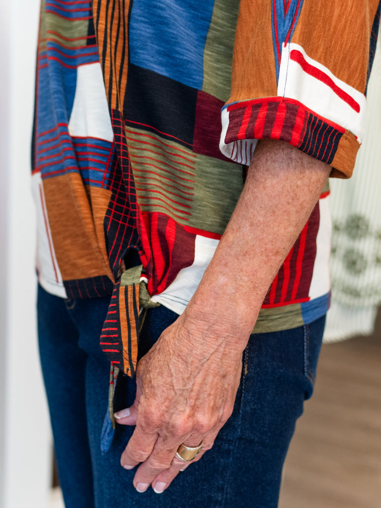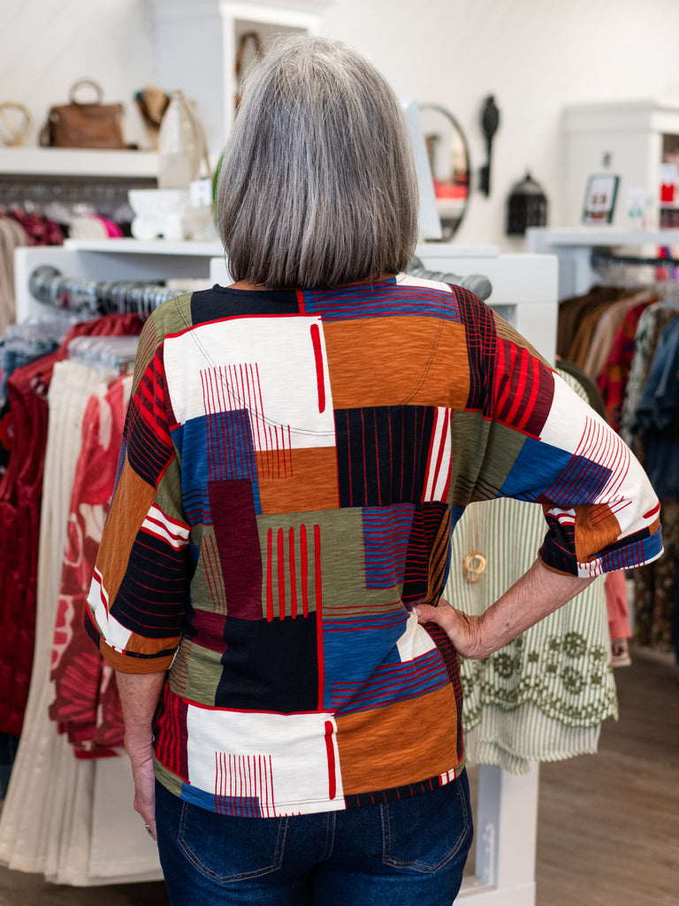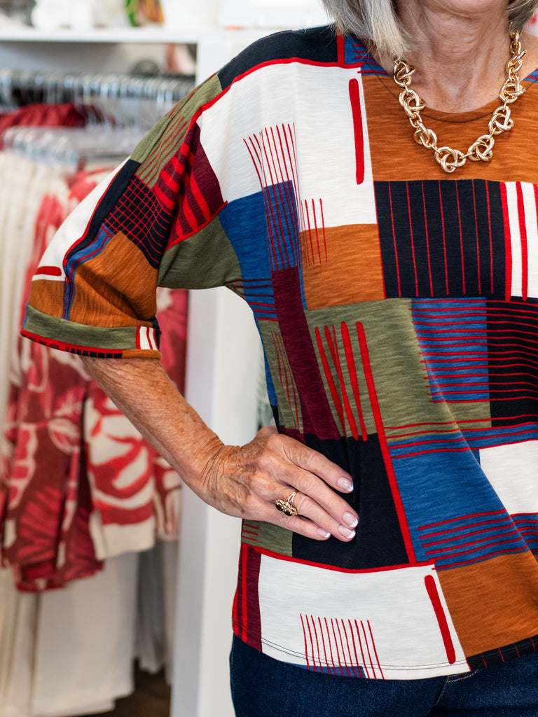 Printed Slub Knit V-Neck Top Square Multi by Multiples