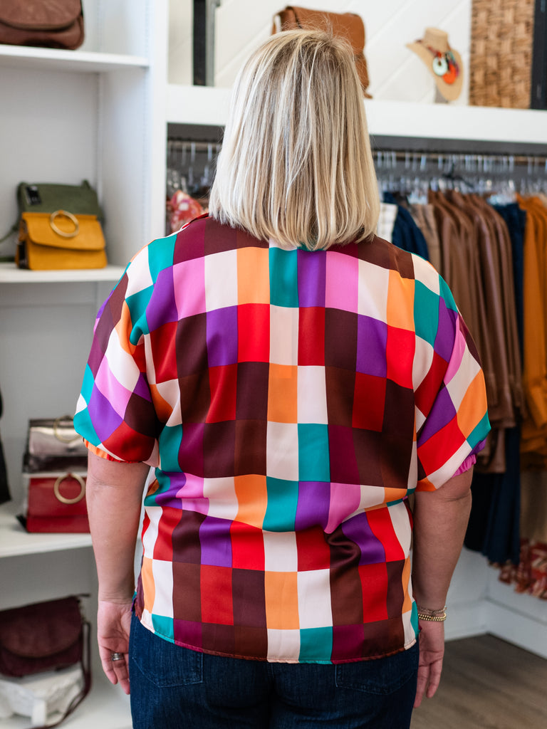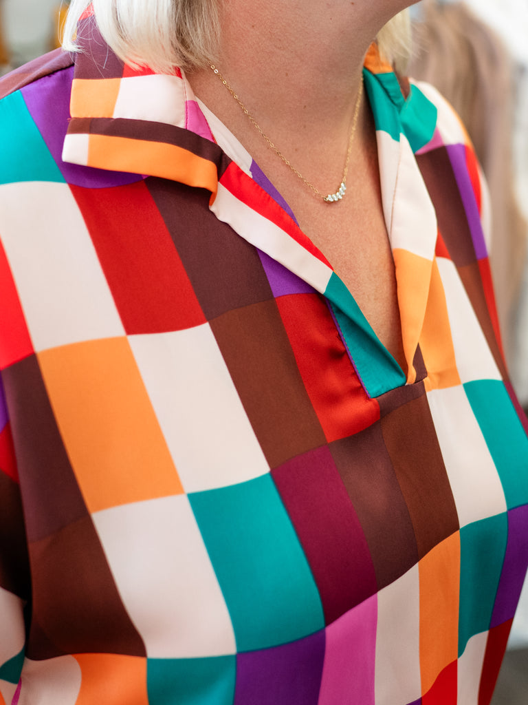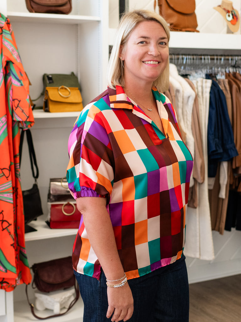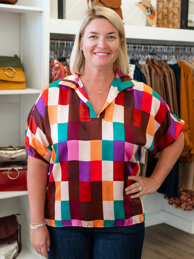 Stand Collar Drop Shoulder Top by Adrienne. Perfect for all your fall festivities!