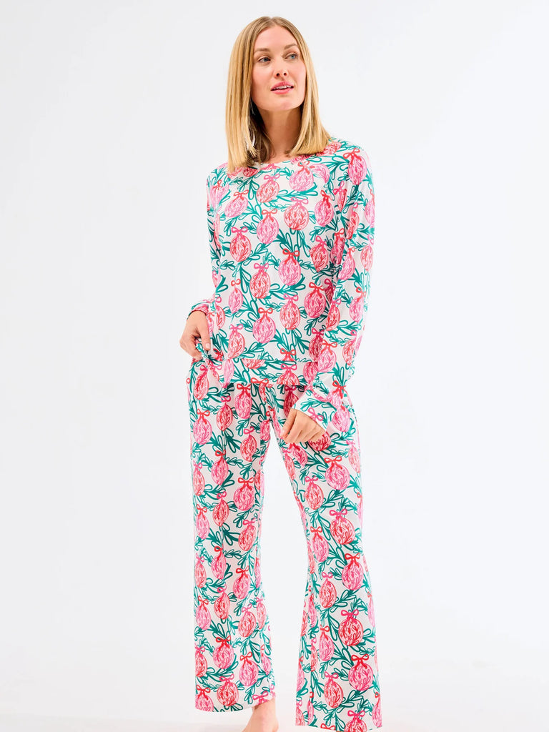 Introducing our Holiday Annie Pajama Set, where comfort meets festive charm. Perfect for sipping cocoa by the tree or enjoying Christmas morning in cozy style, this pajama set brings holiday cheer to every moment. Featuring a long-sleeve top with a classic crew neckline and straight-leg pants with an adjustable drawstring, our Annie Pajama Set combines classic holiday style with all-day comfort.