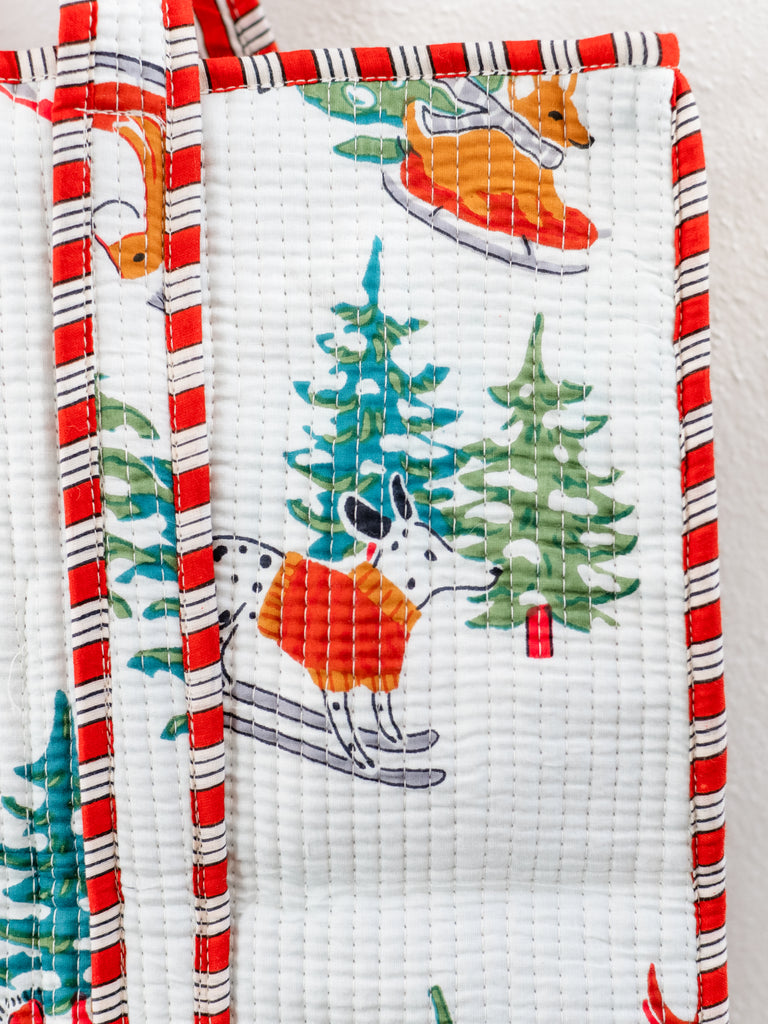 This snow paws cotton tote is covered in a playful dog sledding print that instantly lifts your mood. Lightweight yet roomy, it’s perfect for farmers’ market hauls, snow days, or everyday errands. Soft cotton handles make it comfy to carry, while the cheerful dog sledding print brings laughter to any outfit. A fresh, happy essential for all your on-the-go adventures!