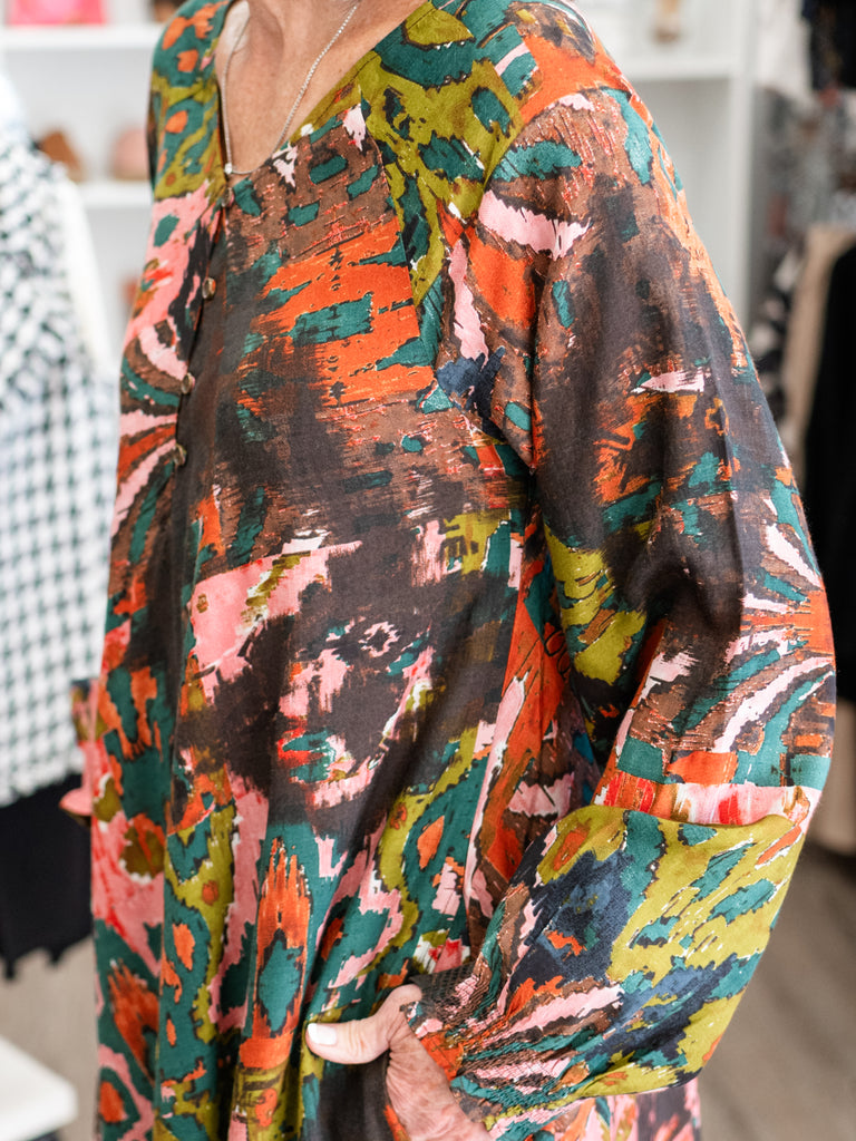 The 'Diamonds' V-Neck Long Sleeve Dress, a dress that is both sweet and feminine. Featuring a flattering v-neckline, a gathered seam over the shoulder, and subtle bishop sleeves. The flattering feminine shape and sweet floral print makes this dress perfect for a casual day out or an evening occasion.