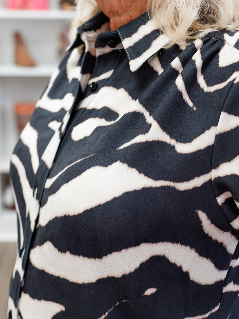 Faux Suede Smocked Sleeve Dress Zebra by Boho Chic