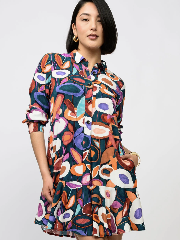 Embrace the season with the Ivy Jane Fall Blooms Dress in Hunter. This charming long-sleeve dress features vibrant fall colors in a flowy, flattering silhouette. Perfect for dressing up or down, its playful design offers comfort and style for any occasion. Add a touch of cozy elegance to your wardrobe this autumn with this adorable and versatile piece.
