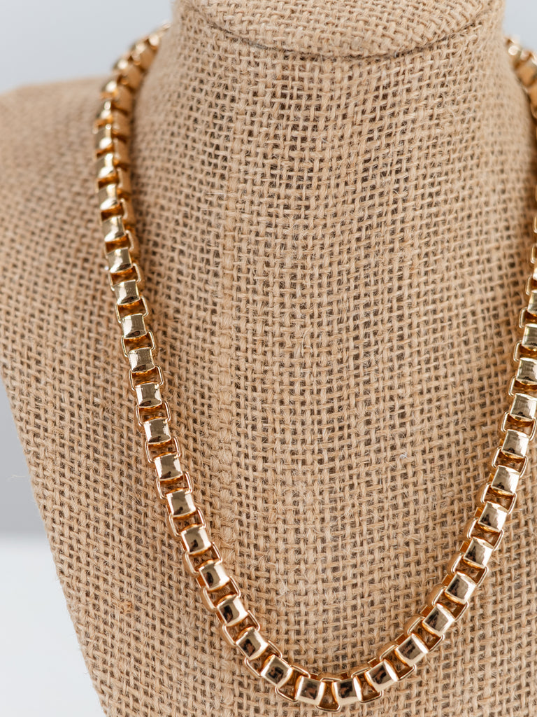 Sleek, modern, and endlessly versatile, this polished gold link necklace is the perfect piece to elevate any outfit. Featuring a continuous row of softly sculpted rectangular links, it creates a beautiful reflective shine while maintaining a clean, sophisticated silhouette.
