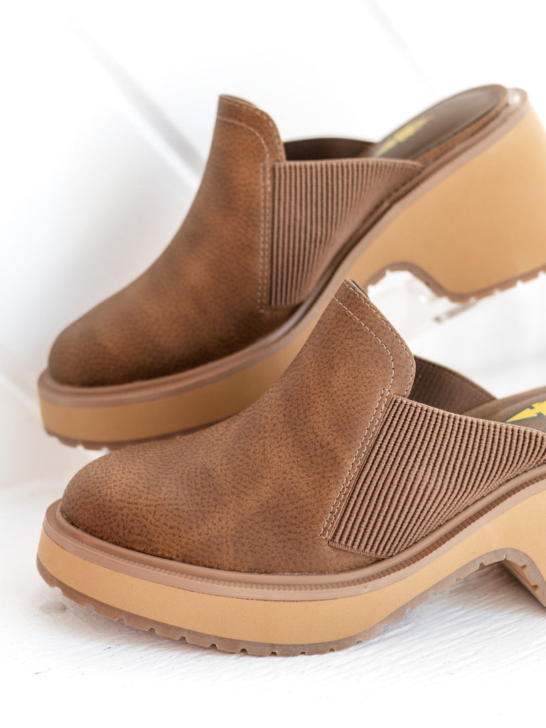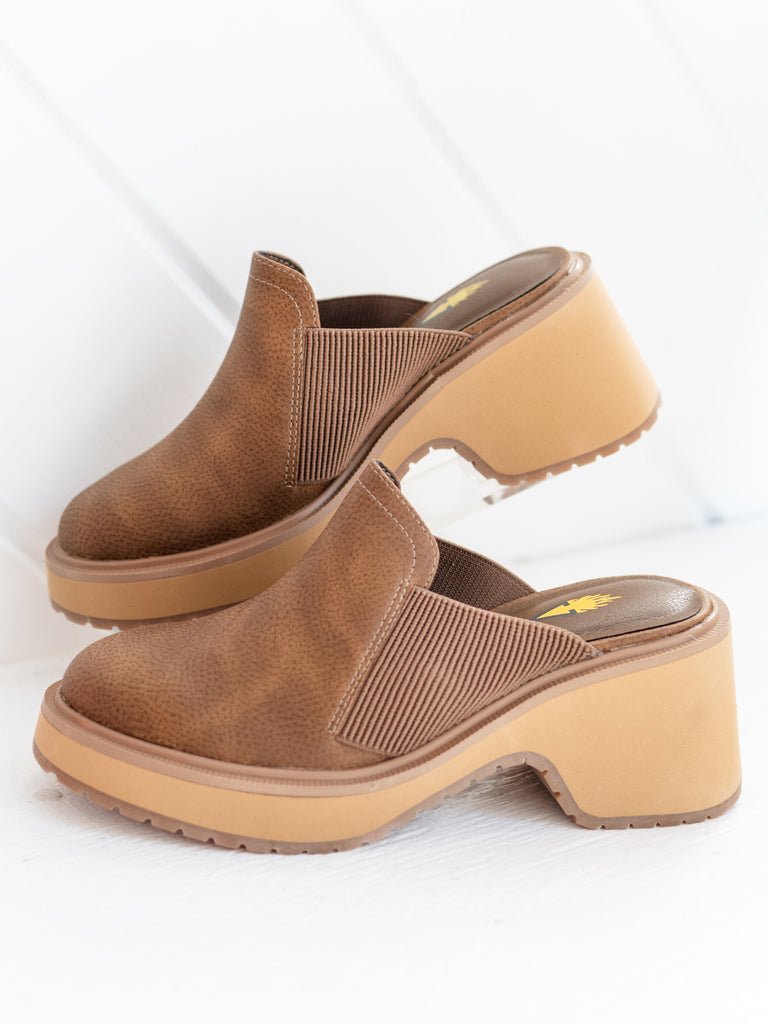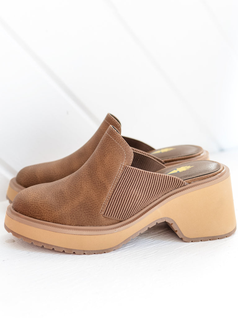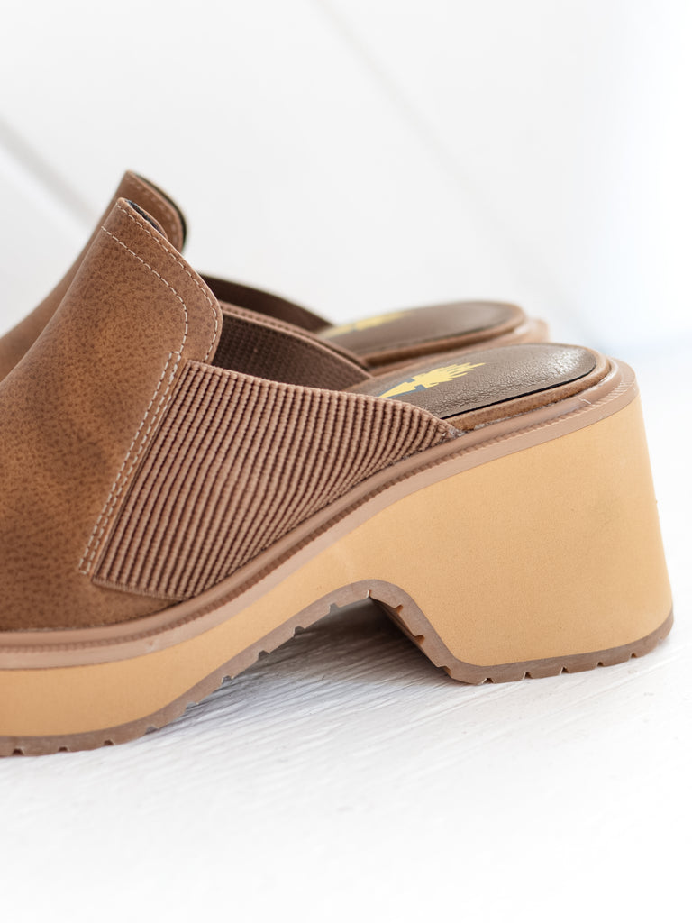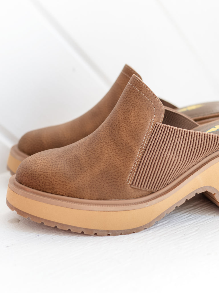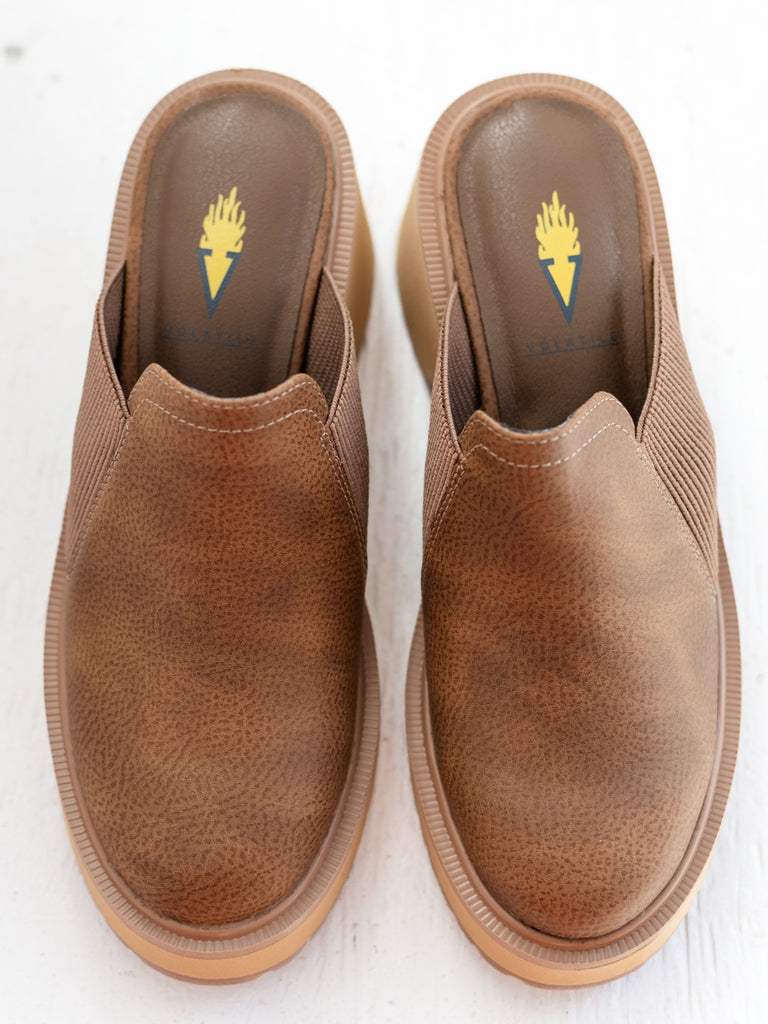 Explore effortless style and comfort with Volatile's Monet mule featuring elastic side panels for easy wear and an EVA bottom with a lug sole, ensuring stability and comfort with any outfit.