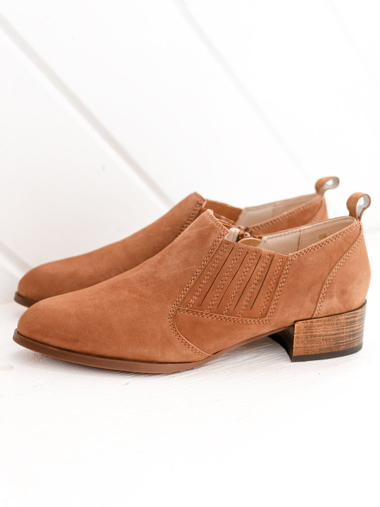 Step into effortless style and comfort with this modern suede shootie. Designed with a sleek almond toe and set on a walkable 1.25-inch wood block heel, it’s the perfect blend of chic and practical. A side zipper offers easy on-and-off wear, while a seamed stretch gusset ensures a flexible, secure fit. Inside, a molded arch support insole provides lasting comfort from day to night. Whether paired with denim or a tailored pant, this versatile shootie brings refined edge to any look.