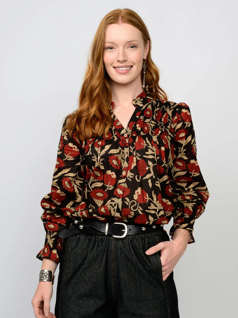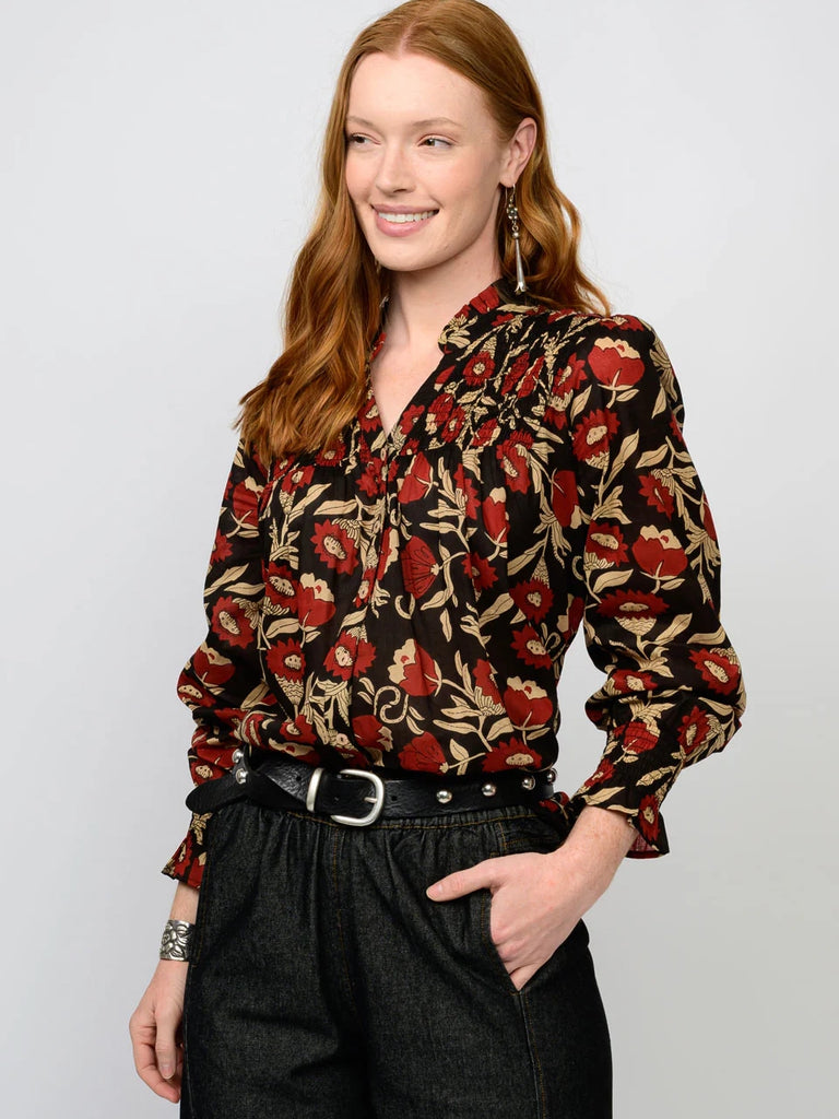 Embrace effortless charm with the Fields of Poppies Top, a beautifully feminine piece designed to bring a touch of romance to your everyday style. Featuring a delicate button-up front and soft smocking above the bust, this top offers a flattering, comfortable fit that moves with you. The elastic sleeve cuffs create a gentle puffed effect, adding a hint of vintage-inspired elegance. Decorated in a vibrant poppy print, this blouse captures the essence of spring and sunshine—perfect for pairing with your favorite denim, skirts, or tailored trousers.