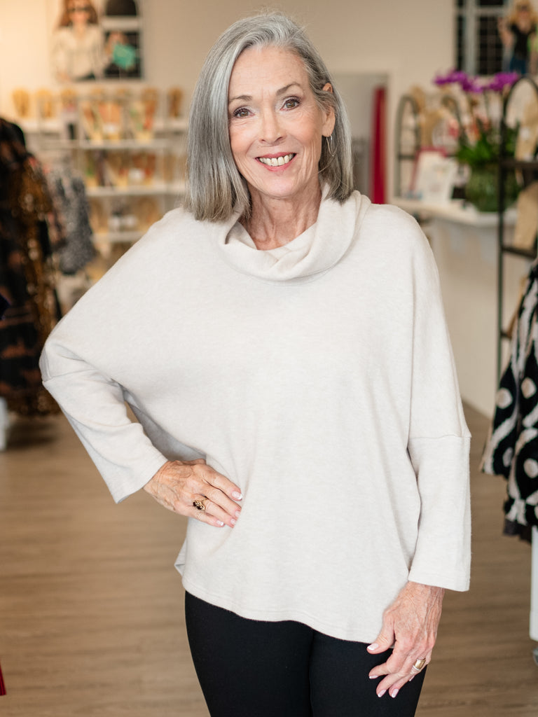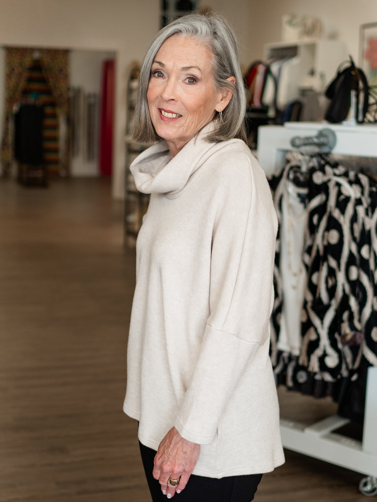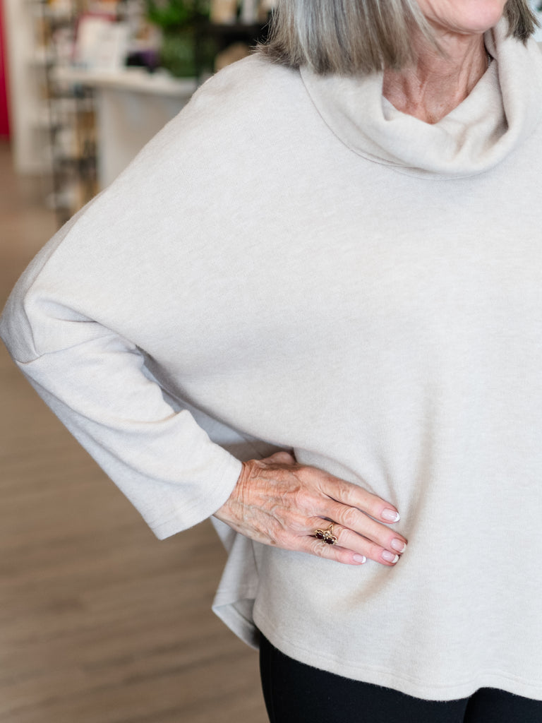 Cowl Neck Buttonback Tunic Beige by Boho Chic