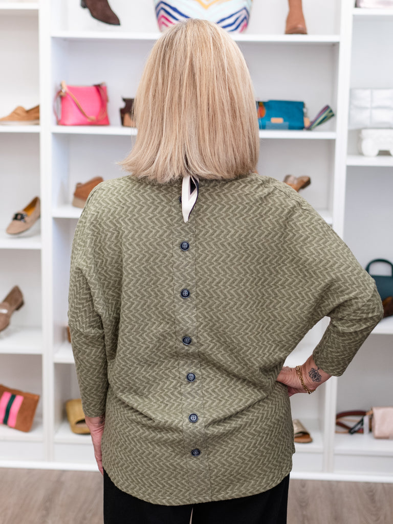 Nothing beats a go-to top from Boho Chic! With a stunning olive color, cowl neck, and button detailing down the back, this top has it all! Pair with your favorite black pant and a fun bootie for an outfit that is perfect for all of your festivities this holiday season!
