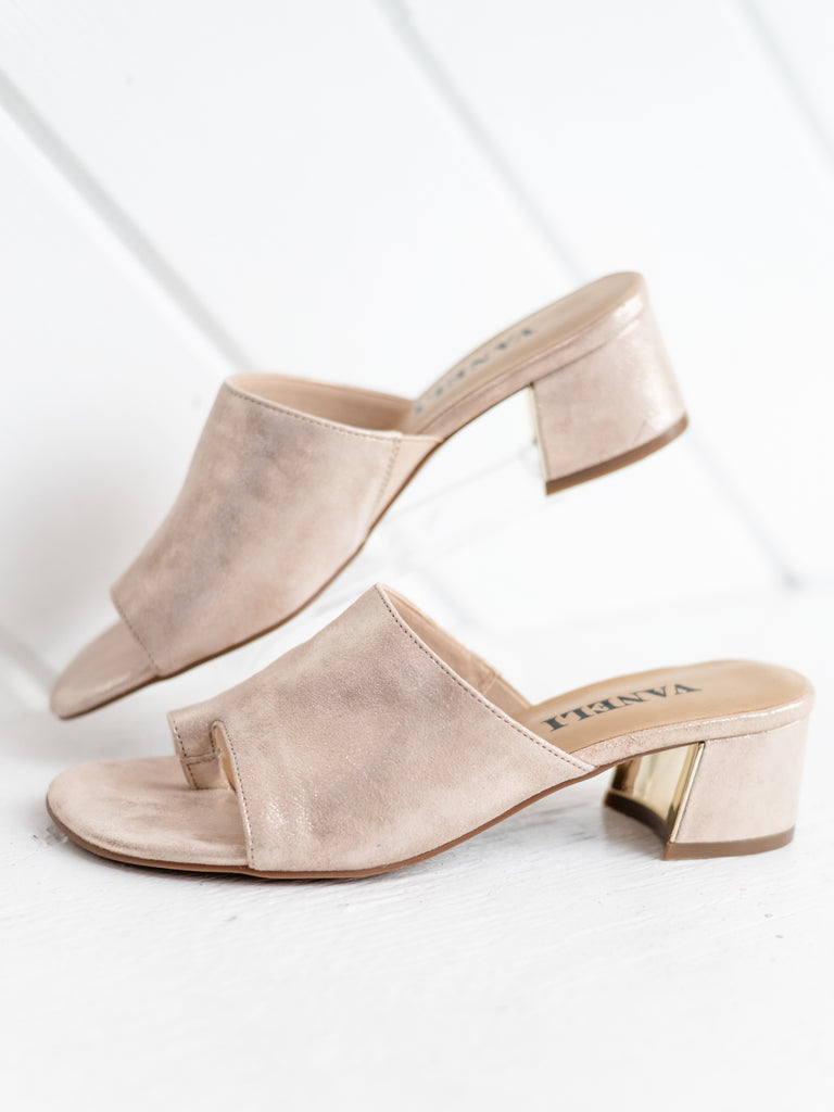 Effortlessly elegant with a modern twist, the Cruz slide is the perfect blend of comfort and understated glamour. Crafted in a soft champagne metallic finish, this style adds just the right amount of shimmer to elevate any look—day or night.