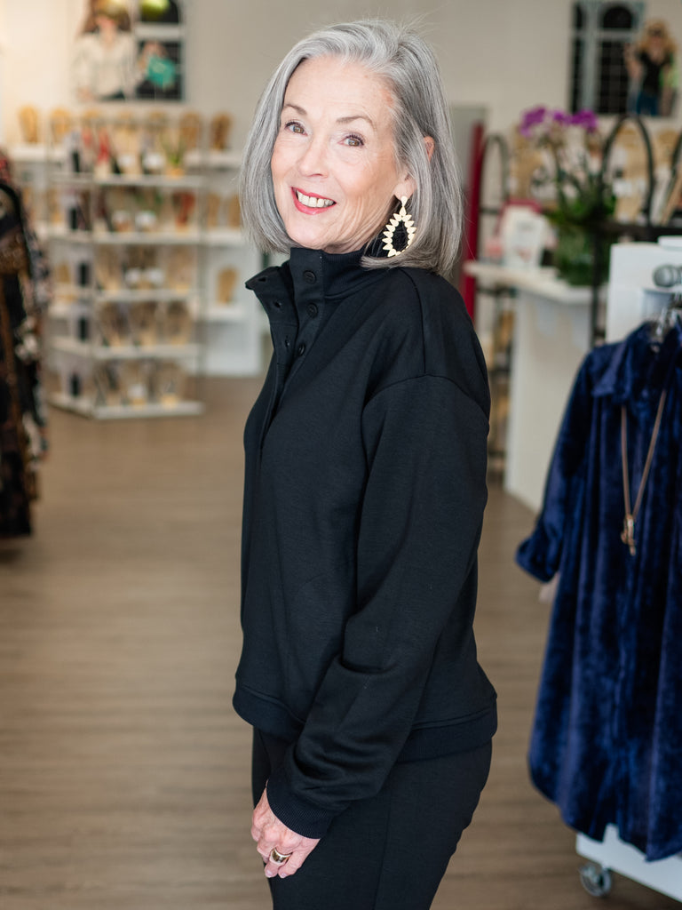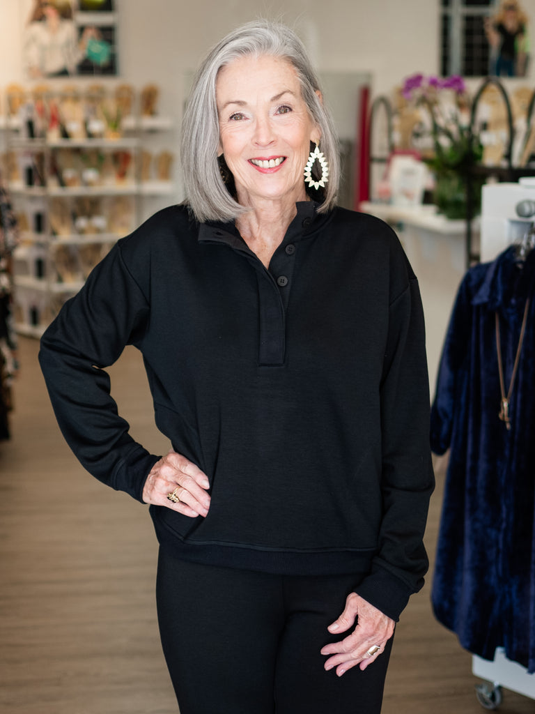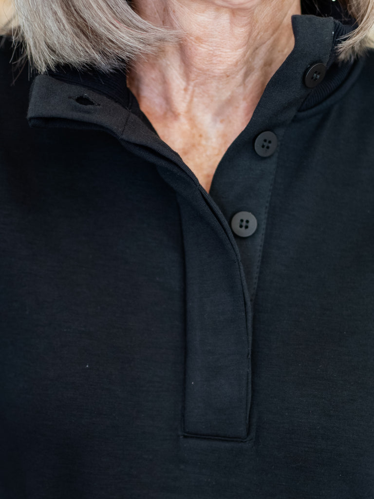 Sweatshirt Button Neck Pullover Black by Lulu B